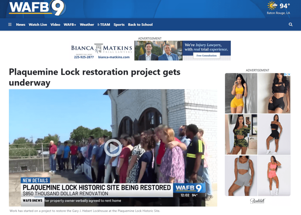 “PLAQUEMINE, La. (WAFB) – Work has started on a project to restore the Gary J. Hebert Lockhouse at the Plaquemine Lock Historic Site.